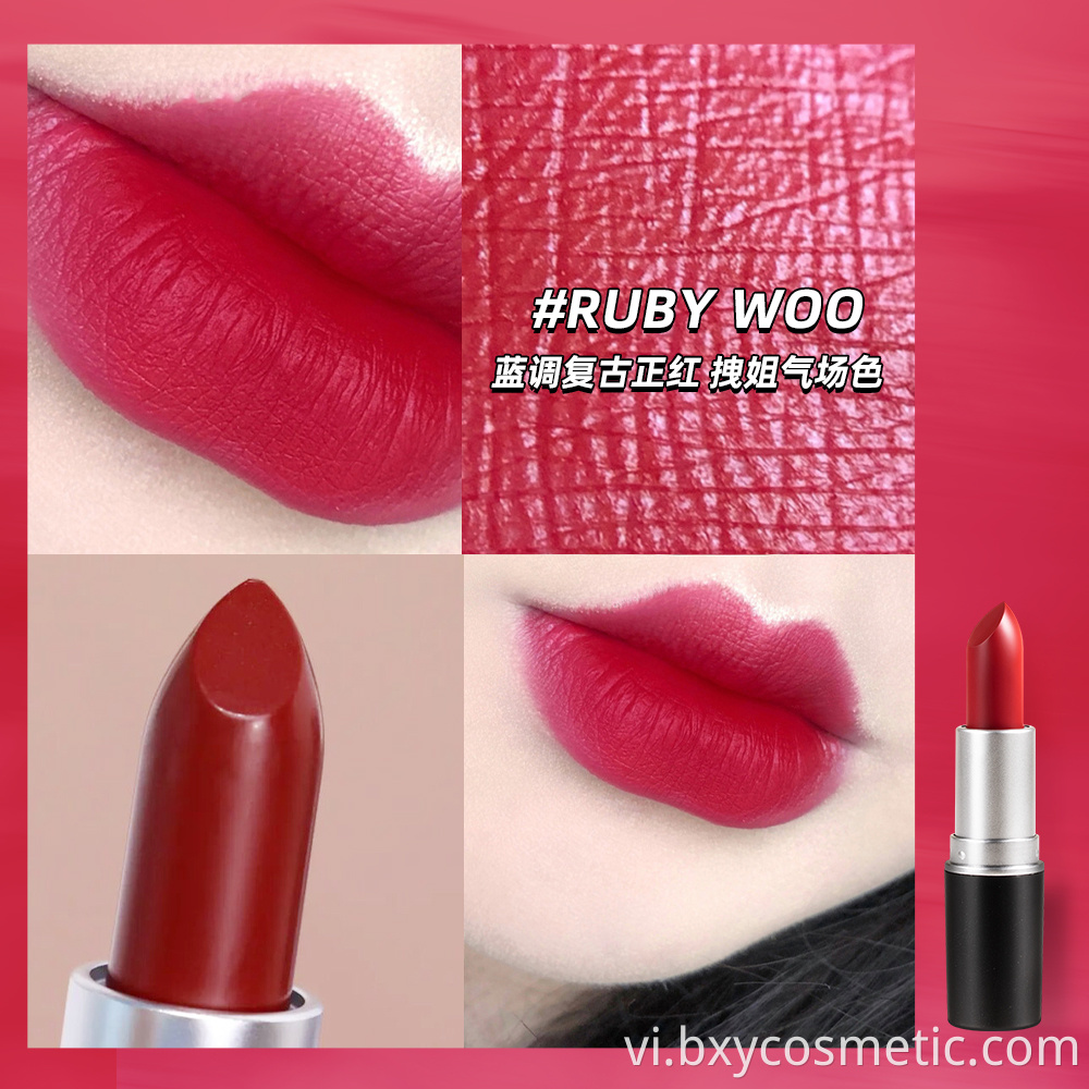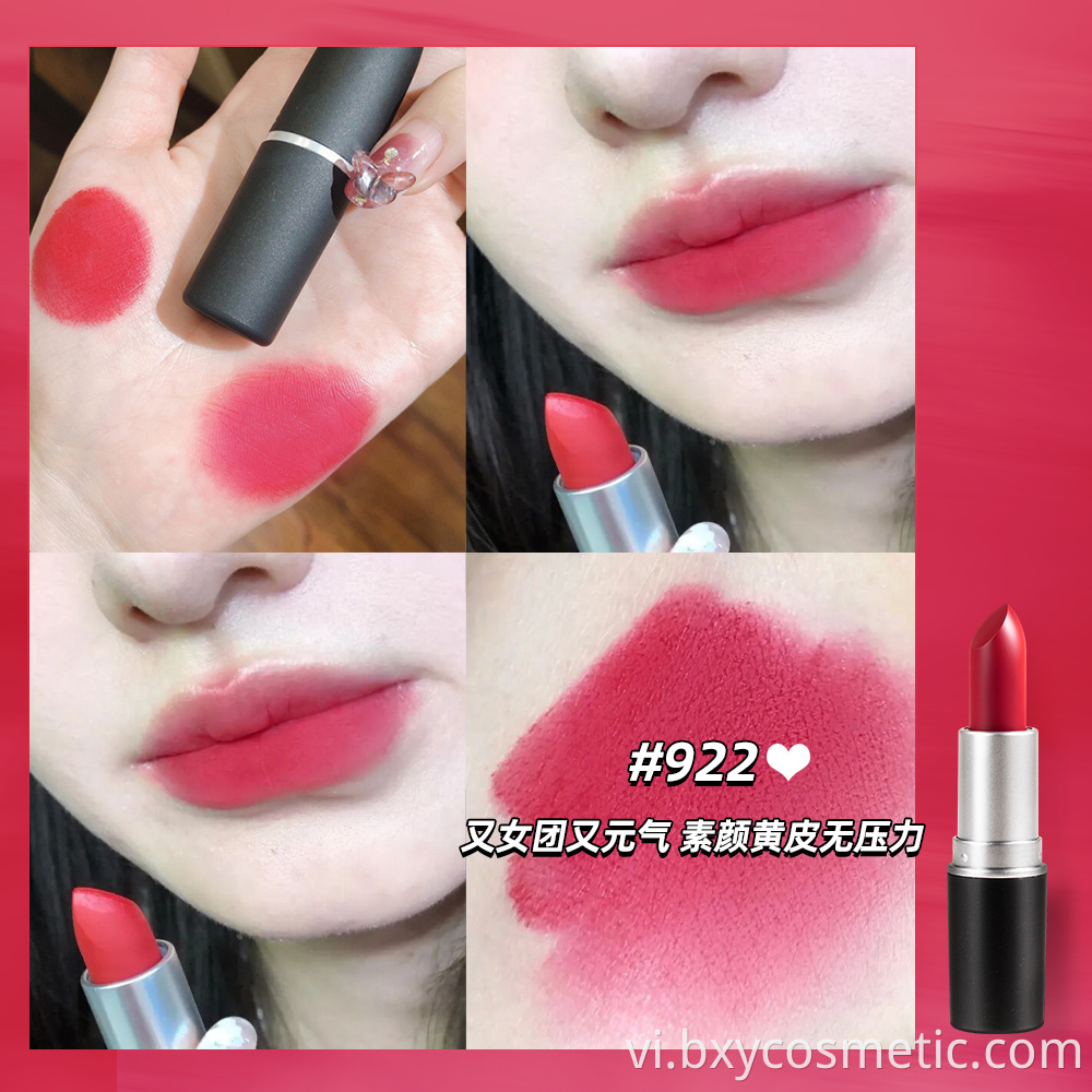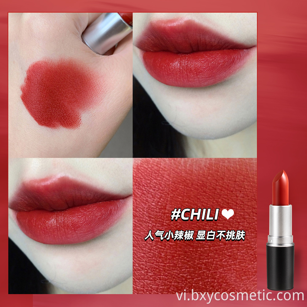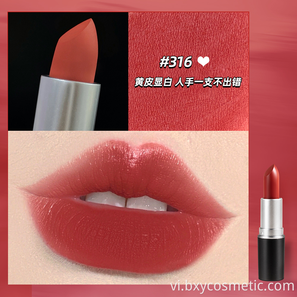 Thiết kế hình viên đạn, hình dạng son môi cổ điển. Kết cấu sương mù mang lại hiệu ứng mờ, nhưng nó có thể giữ ẩm cho môi. Lớp phủ mỏng rất thanh lịch. apply một lớp dày để thể hiện một lớp trang điểm sương mù mờ tiên tiến, rất tiên tiến. Tất cả các loại màu linh hoạt có thể đáp ứng nhu cầu của các màu da khác nhau. 8 số màu cổ điển, bạn có thể chọn bất kỳ một số nào theo ý muốn.